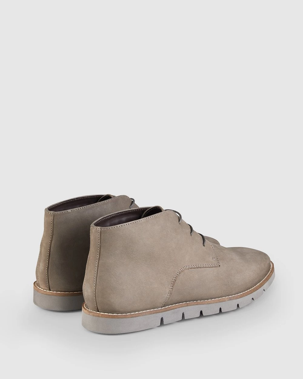 – Light grey- Ankle boot- Nubuck upper- Synthetic lining- Rubber sole- Rand stitching detail- Cement construction- Made in India