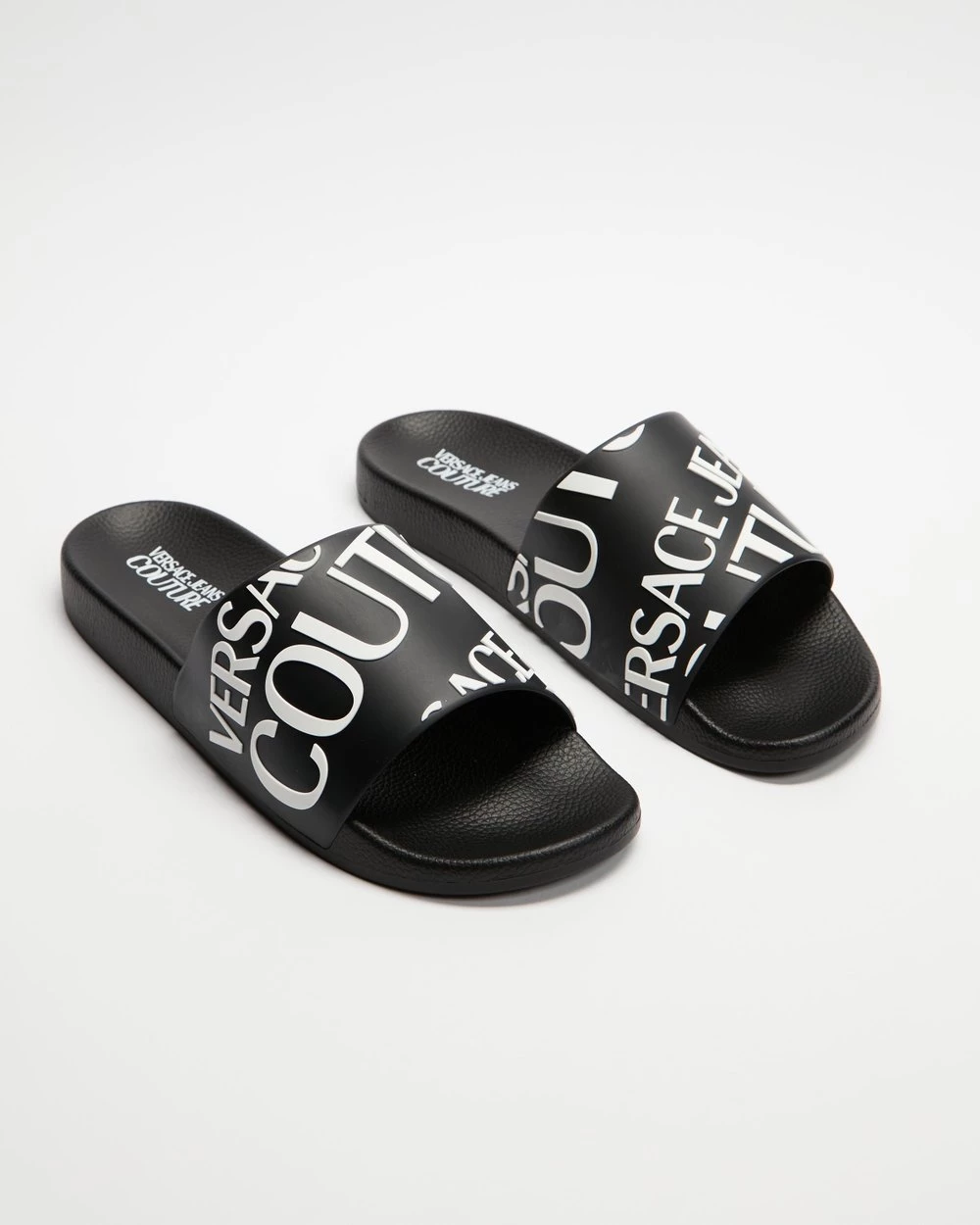 Brand new ❀️ Versace 🌟 Jeans Couture Repeat Logo Pool Slides – Men’s Nero πŸ₯°