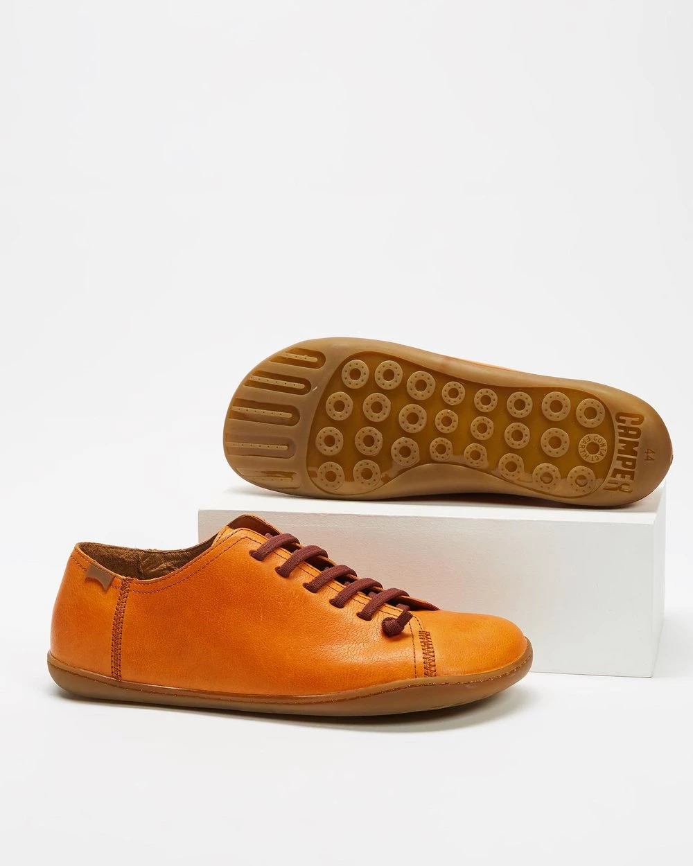 The Peu Cami shoes by Camper are moulded to shape of the foot to provide a natural, barefoot stride. The contrast laces add a pop of colour to these vegetable tanned leather shoes.
