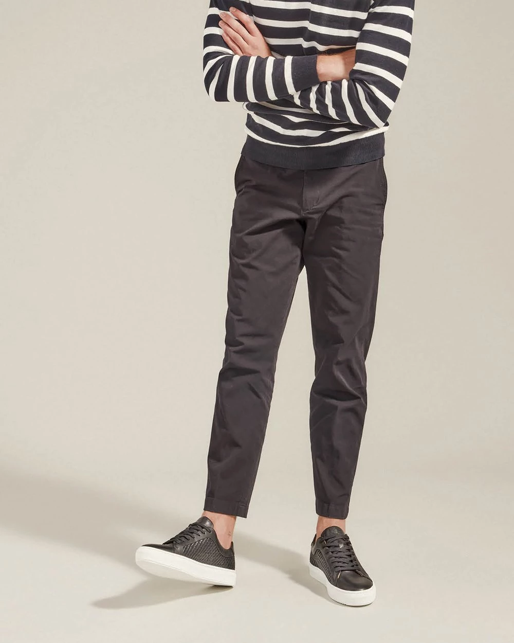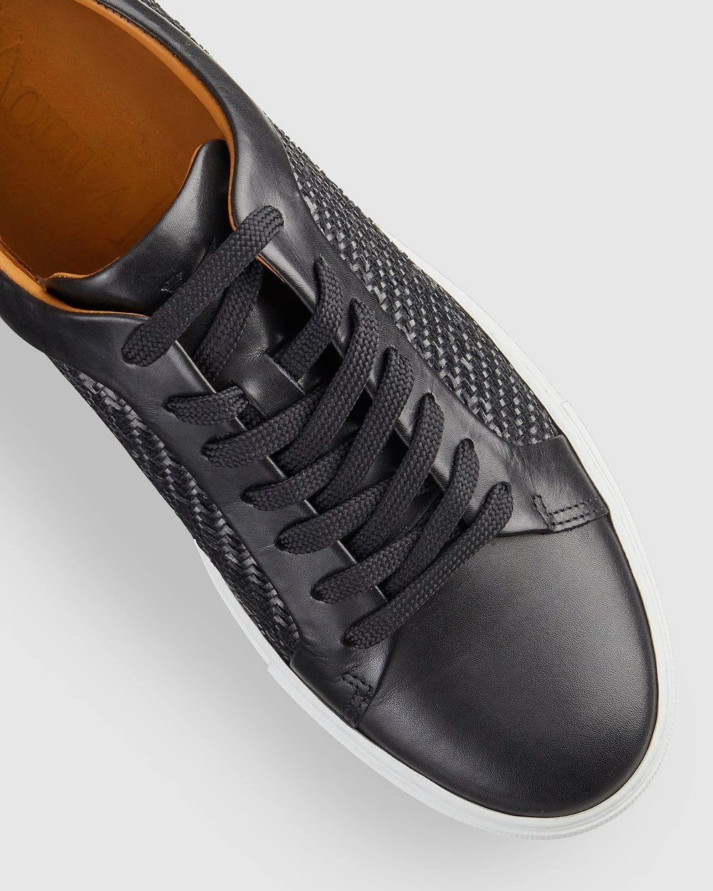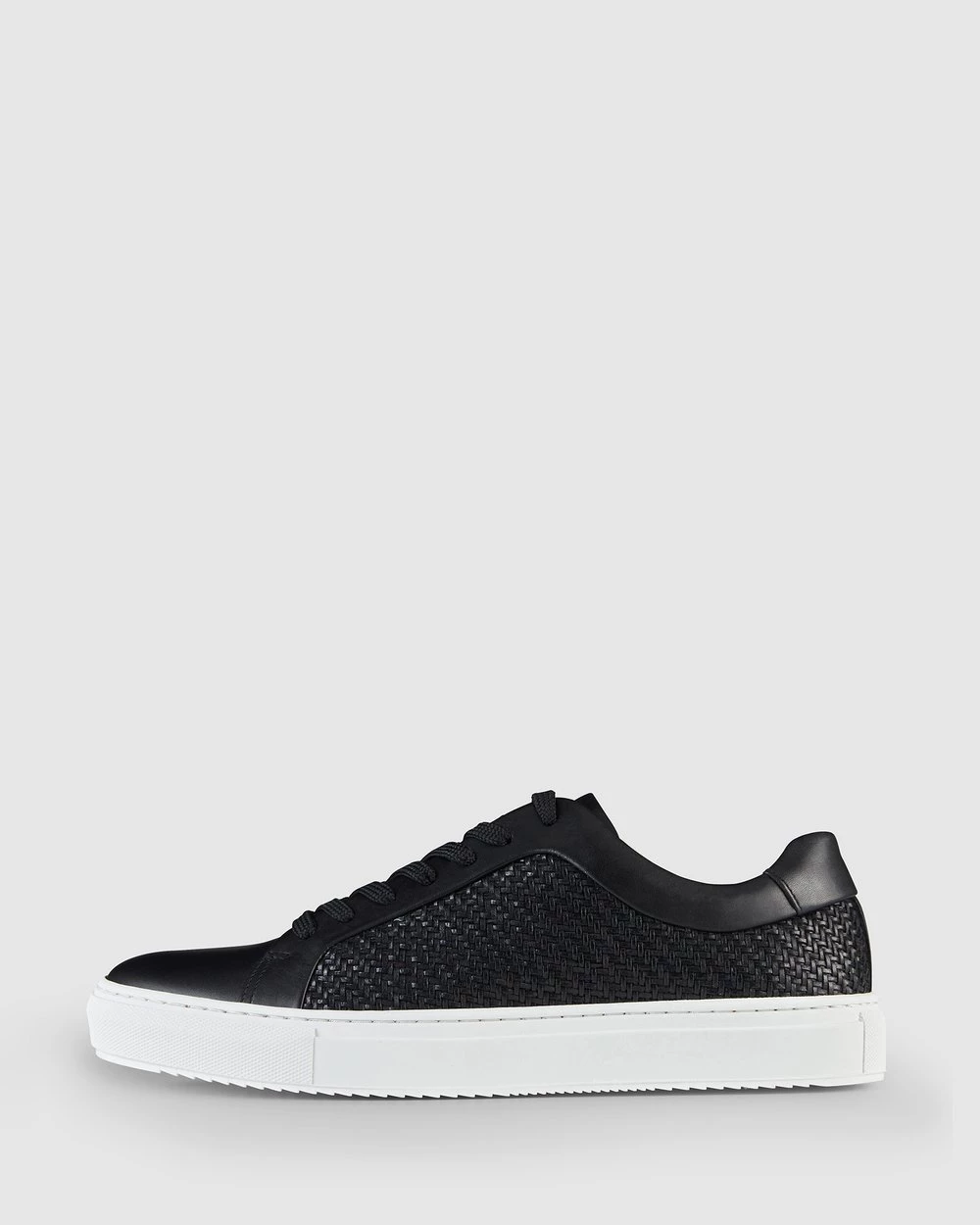 – Black- Sneaker- Leather upper- Leather lined – Woven upper detail- Rubber sole- Stitched side wall- Cement construction- Made in Portugal