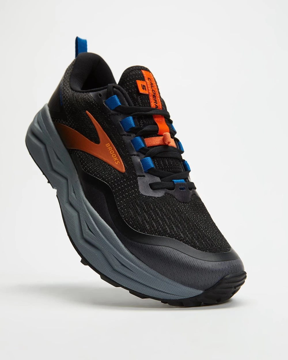 The Brooks Calera 5 running shoes feature a thick midsole and TrailTrack outsoles to provide superior cushioning and protection on any terrain.